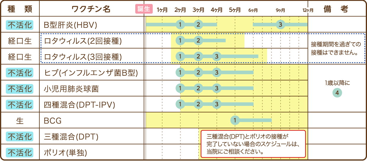 接種するワクチンが多くて大変かと思います。当院では、お子さまにとって最適の時期に